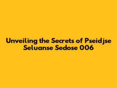 Hey guys! Ever stumble upon something totally cryptic, like a secret code or a hidden message? That's kind of how I felt when I first heard about "pseidjse seluanse sedose final 006." It sounds like something out of a sci-fi novel, right? Well, let's dive headfirst into this mystery and see if we can decode what this is all about. This exploration is going to be a fun ride, and we will try to understand every detail about pseidjse seluanse sedose final 006. Buckle up!