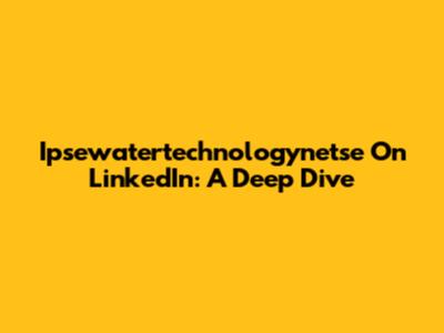 Ipsewatertechnologynetse On LinkedIn: A Deep Dive