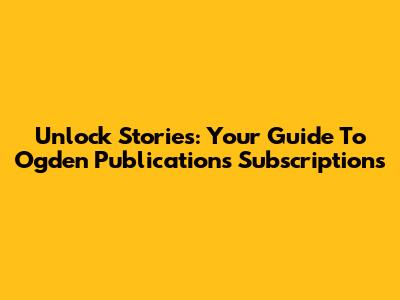 Unlock Stories: Your Guide To Ogden Publications Subscriptions