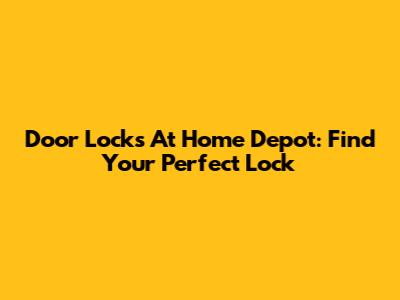 Door Locks At Home Depot: Find Your Perfect Lock