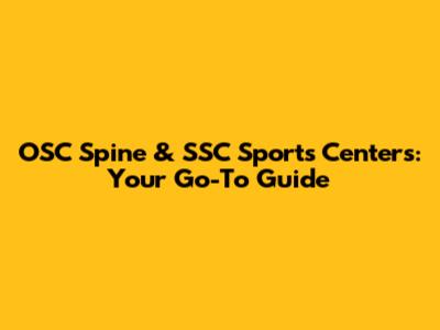 OSC Spine & SSC Sports Centers: Your Go-To Guide