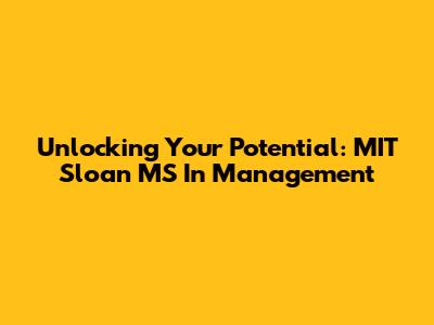 Unlocking Your Potential: MIT Sloan MS In Management