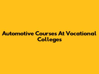 Automotive Courses At Vocational Colleges