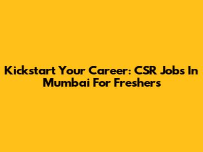 Kickstart Your Career: CSR Jobs In Mumbai For Freshers