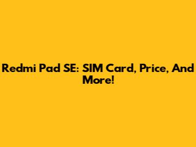 Redmi Pad SE: SIM Card, Price, And More!