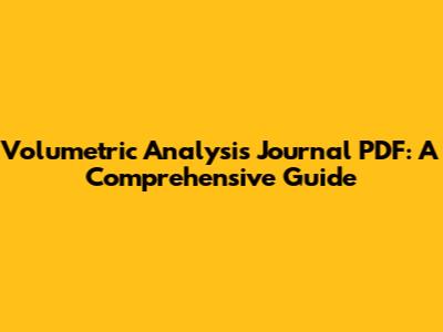 When it comes to learning and mastering volumetric analysis, journal PDFs are invaluable. These resources offer a wealth of knowledge that goes beyond textbooks and basic online articles. Here's why: