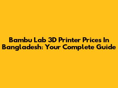 Bambu Lab 3D Printer Prices In Bangladesh: Your Complete Guide