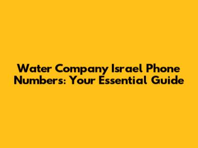 Hey guys! So, you're looking for the water company Israel phone number, huh? It's super important to have this handy, whether you're dealing with a leaky faucet, a sudden outage, or just have a question about your bill. In Israel, the water sector is managed by a few key players, and knowing who to call can save you a ton of time and hassle. We're going to dive deep into how to find the right contact information for water services across the country, making sure you get the help you need, pronto!
