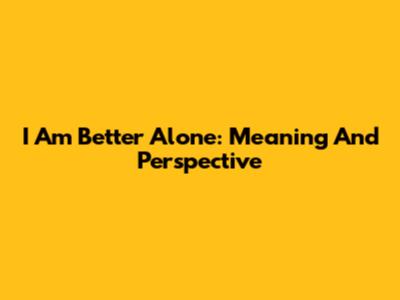 I Am Better Alone: Meaning And Perspective