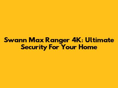 Swann Max Ranger 4K: Ultimate Security For Your Home