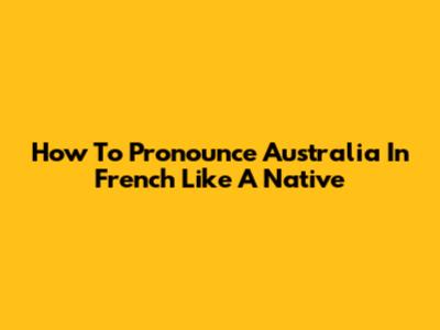 How To Pronounce Australia In French Like A Native