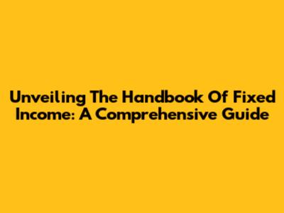 Unveiling The Handbook Of Fixed Income: A Comprehensive Guide