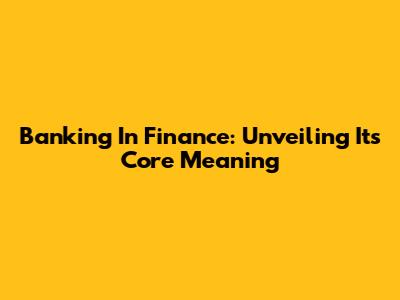 Banking In Finance: Unveiling Its Core Meaning