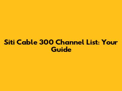 Siti Cable 300 Channel List: Your Guide