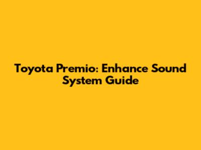 Toyota Premio: Enhance Sound System Guide