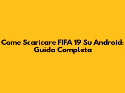Come Scaricare FIFA 19 Su Android: Guida Completa