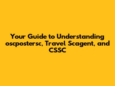 avigating the landscape of acronyms and specialized terms can often feel like deciphering a secret code. Today, we're going to break down three such terms: oscpostersc, travel scagent, and CSSC. While they might seem unrelated at first glance, understanding each can be valuable in specific contexts. So, let's dive in and unravel what these abbreviations represent and why they matter. The aim is to provide a clear and comprehensive overview, making these concepts accessible to everyone, regardless of their prior knowledge. By the end of this guide, you'll be well-equipped to understand these terms and their relevance in their respective fields. This understanding can be incredibly useful, whether you're a student, a professional, or simply someone curious about the world around them. So, let's embark on this journey of discovery together and demystify these terms. The first step in understanding any complex topic is to break it down into smaller, more manageable parts. That's precisely what we'll do here, examining each term individually before exploring any potential connections or overlaps. This approach will ensure that you grasp the fundamentals of each concept before moving on to more advanced topics. And remember, there's no such thing as a silly question, so feel free to explore and learn at your own pace. The world is full of fascinating information, and understanding these terms is just one small step in expanding your knowledge and understanding. So, let's get started and unlock the mysteries of oscpostersc, travel scagent, and CSSC.