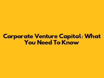 Corporate Venture Capital: What You Need To Know