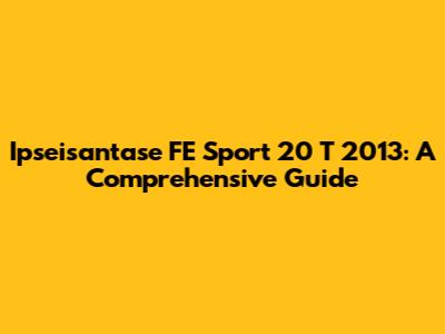 Ipseisantase FE Sport 20 T 2013: A Comprehensive Guide