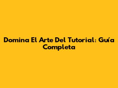 Domina El Arte Del Tutorial: Guía Completa