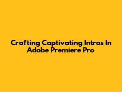 Crafting Captivating Intros In Adobe Premiere Pro