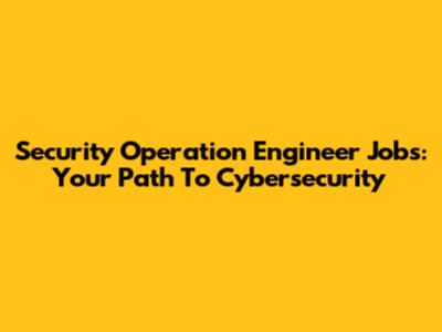 Security Operation Engineer Jobs: Your Path To Cybersecurity