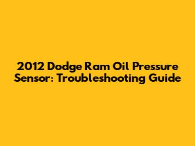 2012 Dodge Ram Oil Pressure Sensor: Troubleshooting Guide