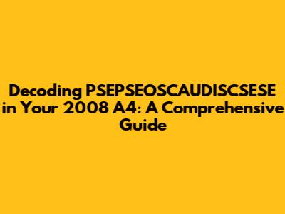 Decoding PSEPSEOSCAUDISCSESE in Your 2008 A4: A Comprehensive Guide