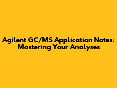 Hey everyone! Let's dive into the world of Agilent GC/MS application notes. If you're working with gas chromatography-mass spectrometry, you know how crucial it is to have reliable, detailed information at your fingertips. These application notes are like goldmines, offering insights, tips, and best practices for various analyses. Whether you're a seasoned pro or just starting out, understanding how to leverage these resources can seriously up your GC/MS game. So, let’s get started and explore what makes these notes so valuable and how you can use them to optimize your work!