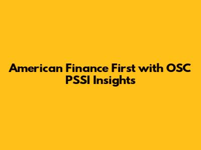 American Finance First With OSC PSSI Insights