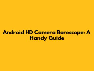 Android HD Camera Borescope: A Handy Guide