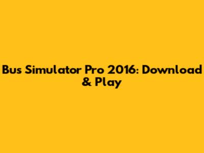 Bus Simulator Pro 2016: Download & Play