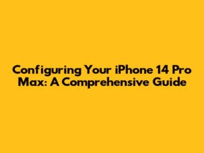 Configuring Your IPhone 14 Pro Max: A Comprehensive Guide