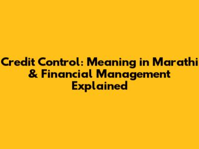 Credit Control: Meaning In Marathi & Importance