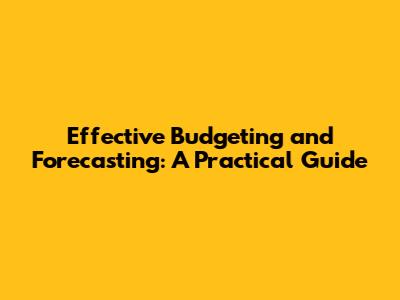 Effective Budgeting And Forecasting: A Practical Guide