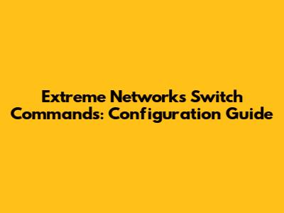 Extreme Networks Switch Commands: Configuration Guide