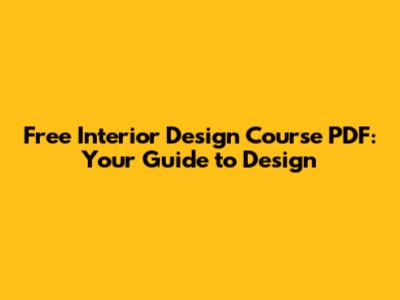 Free Interior Design Course PDF: Your Guide To Design