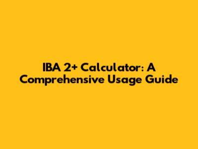 IBA 2+ Calculator: A Comprehensive Usage Guide