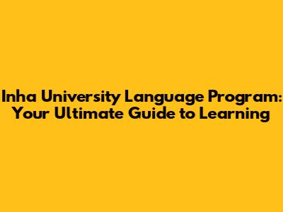 Inha University Language Program: Your Go-To Guide