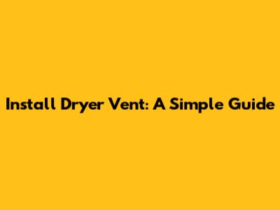 Install Dryer Vent: A Simple Guide