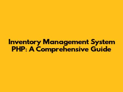 Inventory Management System PHP: A Comprehensive Guide