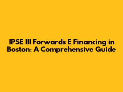 IPSE III Forwards E Financing In Boston: A Comprehensive Guide