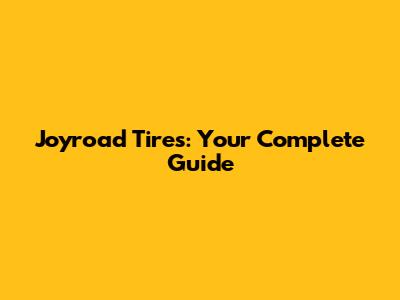 Joyroad Tires: Your Complete Guide