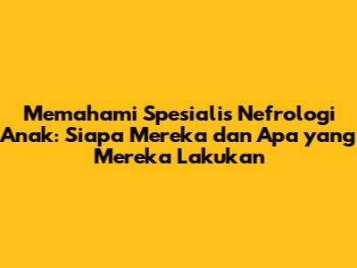 Spesialis nefrologi anak adalah dokter yang telah menyelesaikan pendidikan spesialisasi dalam bidang nefrologi dan berfokus pada perawatan masalah ginjal pada anak-anak. Kata "nefrologi" sendiri berasal dari bahasa Yunani, gabungan dari kata "nephros" yang berarti ginjal dan "logos" yang berarti ilmu. Jadi, secara sederhana, spesialis nefrologi adalah ahli dalam ilmu ginjal. Nah, spesialis nefrologi anak ini adalah spesialis yang mengkhususkan diri pada masalah ginjal yang dialami anak-anak, mulai dari bayi baru lahir hingga remaja. Mereka memiliki pengetahuan dan keterampilan khusus untuk mendiagnosis, mengelola, dan mengobati berbagai kondisi ginjal yang memengaruhi anak-anak.