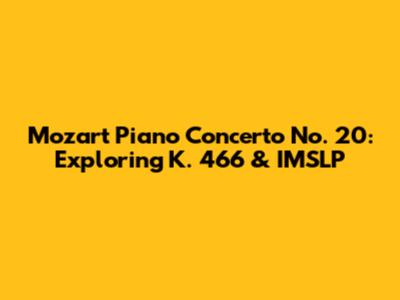 Let's dive into one of Mozart's most iconic and beloved compositions: the Piano Concerto No. 20 in D minor, K. 466. This piece holds a special place in the hearts of classical music enthusiasts, and for good reason. Its dramatic intensity, combined with moments of sublime beauty, makes it a truly captivating listening experience. We'll explore the concerto's background, its structure, and its enduring appeal, and we'll also touch on the invaluable resource that is the International Music Score Library Project, or IMSLP, for those who want to delve deeper into the score.