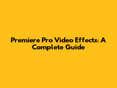 Premiere Pro Video Effects: A Complete Guide
