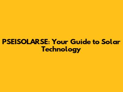 PSEISOLARSE: Your Guide To Solar Technology