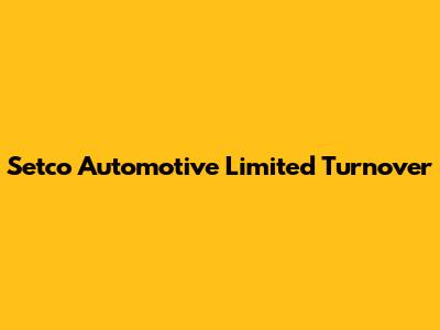 Setco Automotive: Analyzing Turnover & Financial Health