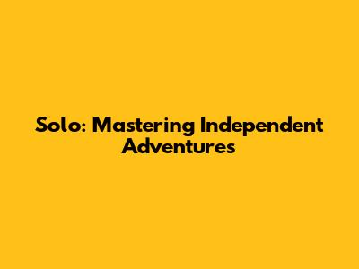 Solo: Mastering Independent Adventures