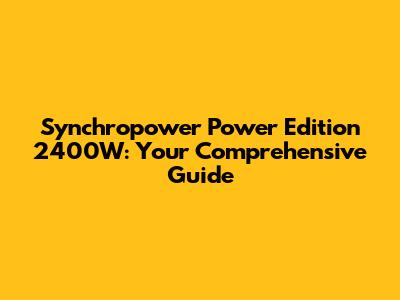 Synchropower Power Edition 2400W: Guide & Troubleshooting